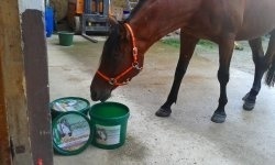 Bei mir lebt er im Offenstall, mit Stuten und Wallache, und naturnaher Ernährung. Und er strotzt vor Lebensfreude. Er liebt euer Futter. Wenn ich mit den Futtersäcken aus der Futterscheune in Graz komme und er sie sieht, fängt er schon zum Wiehern und Grunzen an :) Da will er sofort eine Portion haben, sonst gibt er keine Ruhe. Er hat so ein schönes Fell bekommen und im gesamten eine gesunde, anmutige Ausstrahlung.