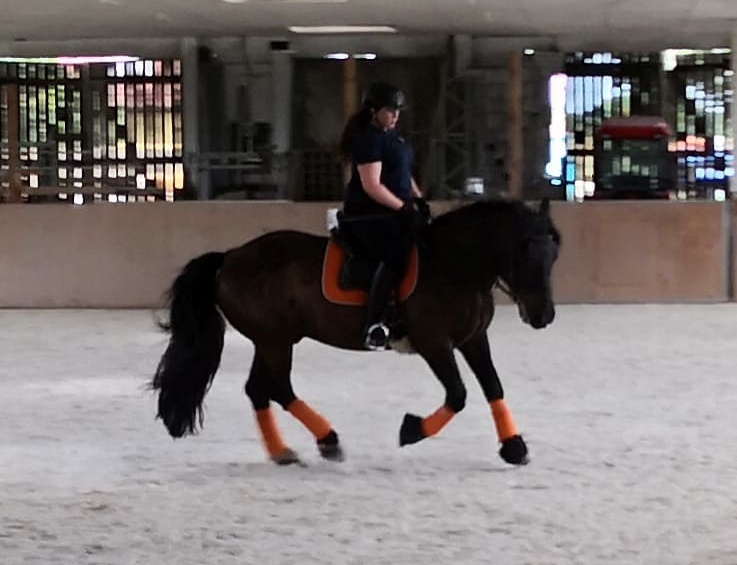 Angefangen haben wir mit dem Alpengrün Müsli als Kraftfutter-Ersatz und dem Naturmineral zur Grundversorgung. Ab und zu gab es mal eine Portion Alpengrün Mash und Merlin hat sich binnen kürzester Zeit super entwickelt. Er hat eine, für ein Kaltblut nicht selbstverständliche, sportliche Figur bekommen und durch das Mash wurde auch sein Kotwasser-Problem gelöst. Neben der Futterumstellung wurde auch entsprechend das Training angepasst und er wurde und wird immer noch täglich bewegt.